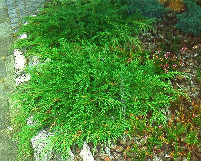 Eine interessante Neuheit, die im Sommer eine grüne Benadelung vorweist und sich im Herbst in ein zimtbraun bis kupferbraun verfärbt. Der Fächerwacholder braucht einen hellen Standort, dort bildet er dann bis zu 2 m breite immergrüne Teppiche.