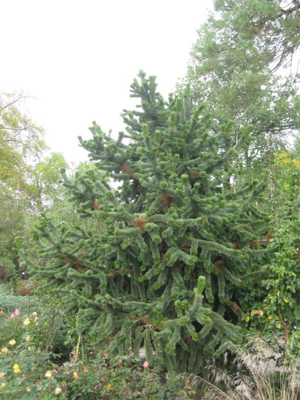 Die Grannen-Kiefer stammt ursprünglich aus Nordamerika. Es ist ein immergrüner Baum der kurze und gedrungene Nadeln hat. Sie sind dunkelgrün, innen heller als aussen, und wachsen an den Triebenden bürstenartig zusammen. Die weibliche Blüte ist unscheinbar und purpurrot und die männliche Blüte ist unscheinbar und dunkelrot. Die Früchte sind hängend und haben lange borstige Nadelschuppen-Dornen.
