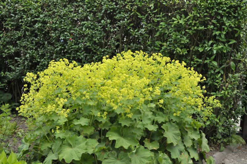 Der großblättrige Frauenmantel - Alchemilla mollis - ist eine beeindruckende Pflanze mit starkem, flächendeckendem Wuchs. Seine grüngelben Blüten sind eine wahre Augenweide von Juni bis August. Die mattgrünen Blätter mit ihrer seidigen Behaarung verleihen ihm einen besonderen Charme. Ideal für sonnige bis halbschattige Standorte mit frischem bis feuchtem Boden. Lassen Sie sich von der Schönheit dieser Pflanze verzaubern!