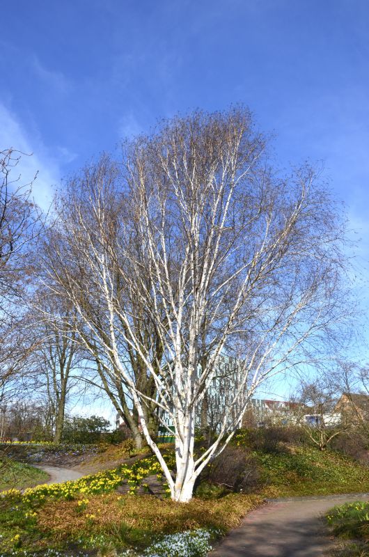 Die Rinde der Himalaja-Birke ist zunächst rötlichweiß und später weiß schimmernd, quergestreift und abrollend. Im April trägt er hübsche gelbe Kätzchen. Das Blatt ist matt-dunkelgrün und verfärbt sich im herbst prächtig goldgelb. Der Standort sollte sonnig sein und der Boden sollte frisch bis feucht und gut durchlässig sein. Dieser mittelgroße und frostharte Baum hat eine anfangs breit kegelförmige Kröne, welche aber im Alter abgeplattet und halbrund ist.