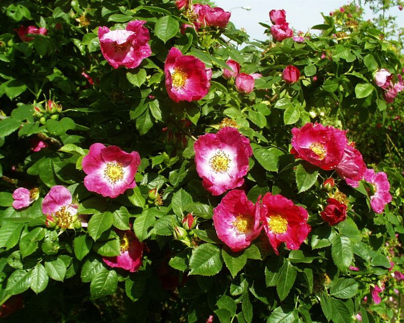Die Hundsrose 'Kiese' - ein wahres Blütenwunder! Zarte, duftende Blüten in leuchtendem Kirschrot und strahlendem Gelb. Das dunkelgrüne Blattwerk verleiht diesem Schönling einen atemberaubenden Kontrast. Ein sonniger bis halbschattiger Standort und frischer, durchlässiger Boden lassen diese Schönheit erblühen. Hol dir die Romantik der Natur in deinen Garten! 🌹✨