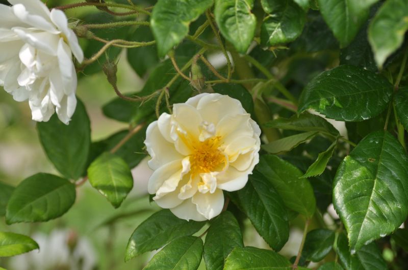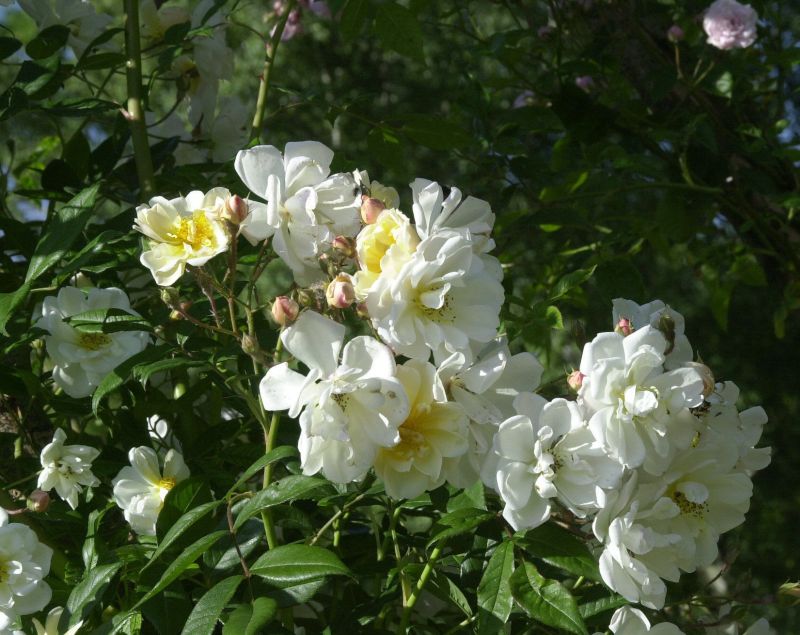 Die Kletterrose 'Lykkefund' - eine wahre Schönheit aus Dänemark. Mit ihrem starken Kletterwuchs und fast dornenlosen Trieben erobert sie jeden Garten im Sturm. Ihre großen, halb gefüllten, weißen Blüten verströmen einen betörenden Duft, der Bienen und Schmetterlinge magisch anzieht. Ob sonnig oder halbschattig - dieser Star unter den Rosen blüht überall. Hol dir die 'Lykkefund' und lass deinen Garten erblühen! 🌹🌿