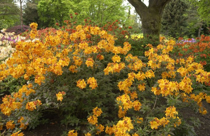 Die Sorte " Klondyke" ist eine sehr geschätzte Sorte! Die Knospen sind orange, während die Blüten goldgelb und weit geöffnet ist. Die Blütezeit ist von Mai bis Juni. Der Wuchs, mittelstark breitaufrecht, 15-jährig etwa 130 cm hoch, 120 cm breit. Vollkommen winterhart.