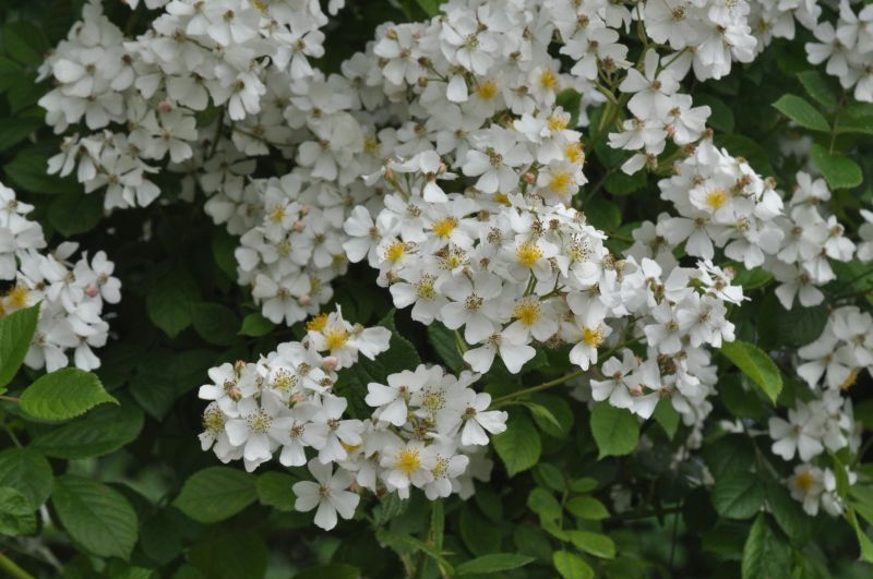 Die Vielblütige Rose ist sommergrün und hat grün gefärbte Blätter. Von Juni bis Juli präsentiert er seine wunderschönen weißen Blüten, die den ganzen Strauch überziehen und somit alle Blicke auf sich zieht. Die rundlichen Früchte sind orange bis rötlich gefärbt und sehr dekorativ an dem Strauch. Der Standort sollte sonnig bis halbschattig sein und der Boden sollte frisch und nährstoffreich sein.